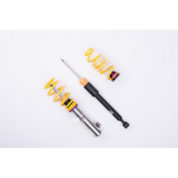 Sporty handling combined with outstanding looks. With factory pre-configured damping. The KW coilover kit Variant 1 inox-line is our entry model for more driving pleasure with an attractive and individually adjustable lowering.
