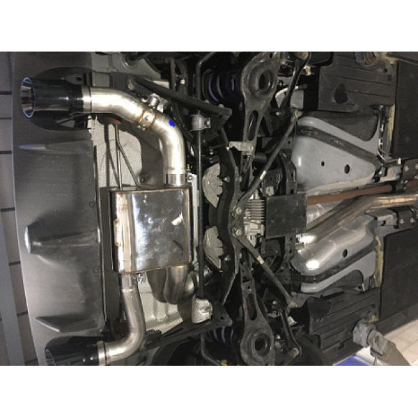 The SwitchPath™ Exhaust is a full 3” diameter system featuring a straight-through muffler consisting of AWE’s special blend of stainless steel packing and acoustical material. With a valved outlet on the passenger’s side, the SwitchPath™ Exhaust can remain quiet and comfortable while cruising, or rowdy when you want to crank it to 11. The SwitchPath™ Exhaust can retain the factory ECU-controlled operation or it can be bypassed by fitting the included SwitchPath™ Remote, enabling you to toggle between sophisticated and aggressive at any time from within the cabin.