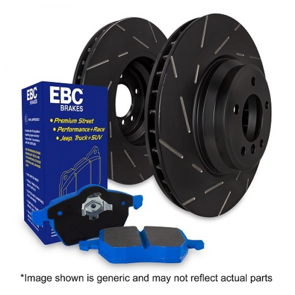 Kit contains one set of DP52274NDX Bluestuff brake pads and one pair of USR2030 USR slotted brake discs
